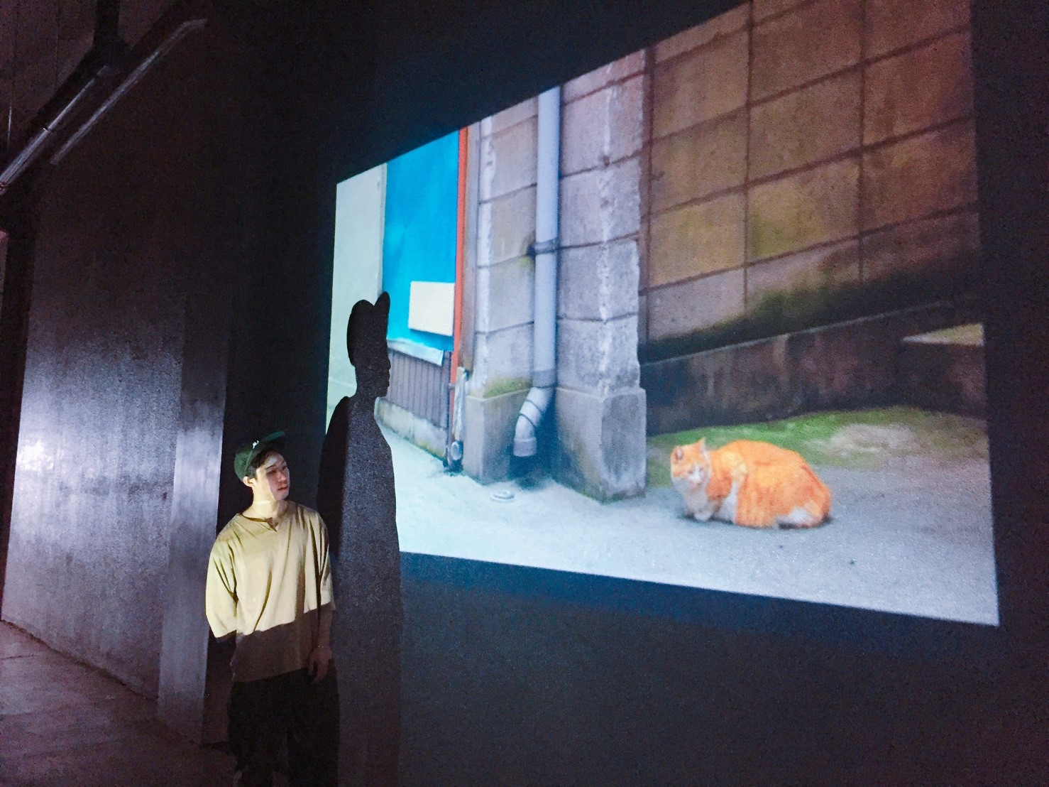 細い道には大きな映像が、、